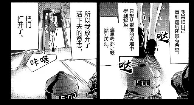 男主女主圣父圣母太严重了 ,漫画里真不这样。有栖在即将要死的时候,也道德绑架别人。(哈哈哈哈)剧情为女生父亲刚死,想拉所有人陪葬,有栖为了让女生发一张存活卡就差跪下了。
